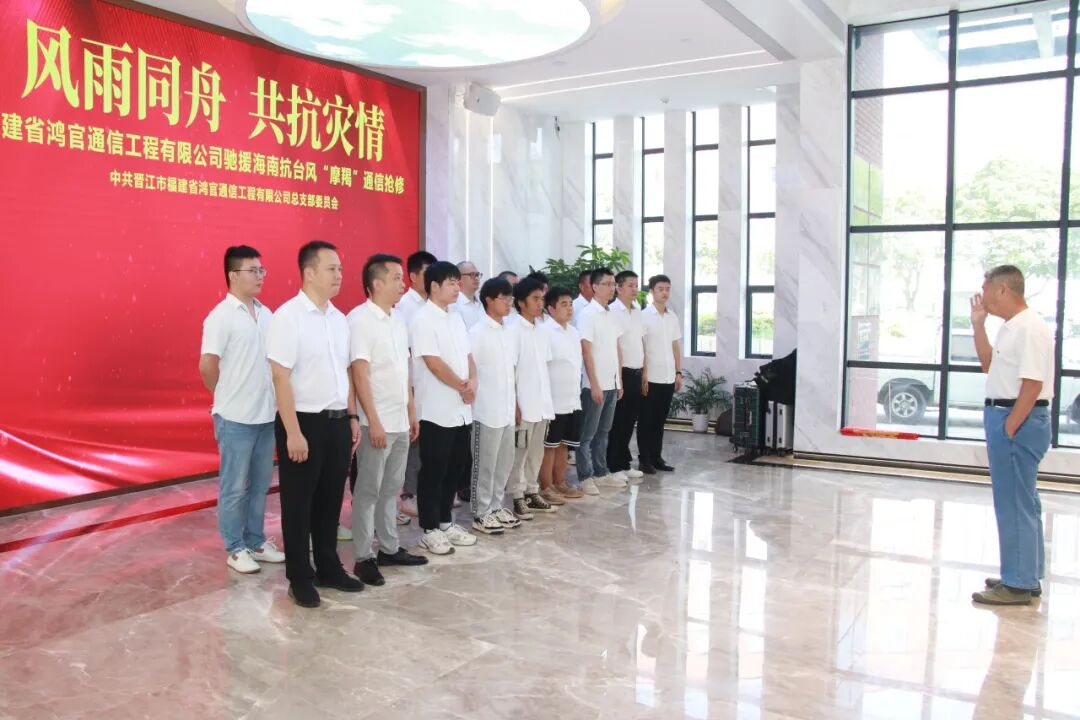 2024年9月12日上午,鴻官公司在晉江總部召開“風雨同舟、共抗災情”福建鴻官公司馳援海南抗臺風“摩羯”通信搶修動員會,泉州地區(qū)馳援海南通信搶修的員工代表、公司黨總支書記、董事長翁長官出席動員會并作動員講話,并強調(diào):“此次我們奔赴海南抗臺風‘摩羯’的通信搶修前線,任務艱巨且責任重大。我們要以最快的速度、最高的質(zhì)量完成通信搶修任務,讓海南的通信網(wǎng)絡盡快恢復正常運行,這是我們的使命,也是我們對海南人民的承諾?!蔽覀兠恳粋€人都要做到平安出發(fā),平安歸來。最后,衷心預祝我們的通信搶修任務順利、圓滿地完成。