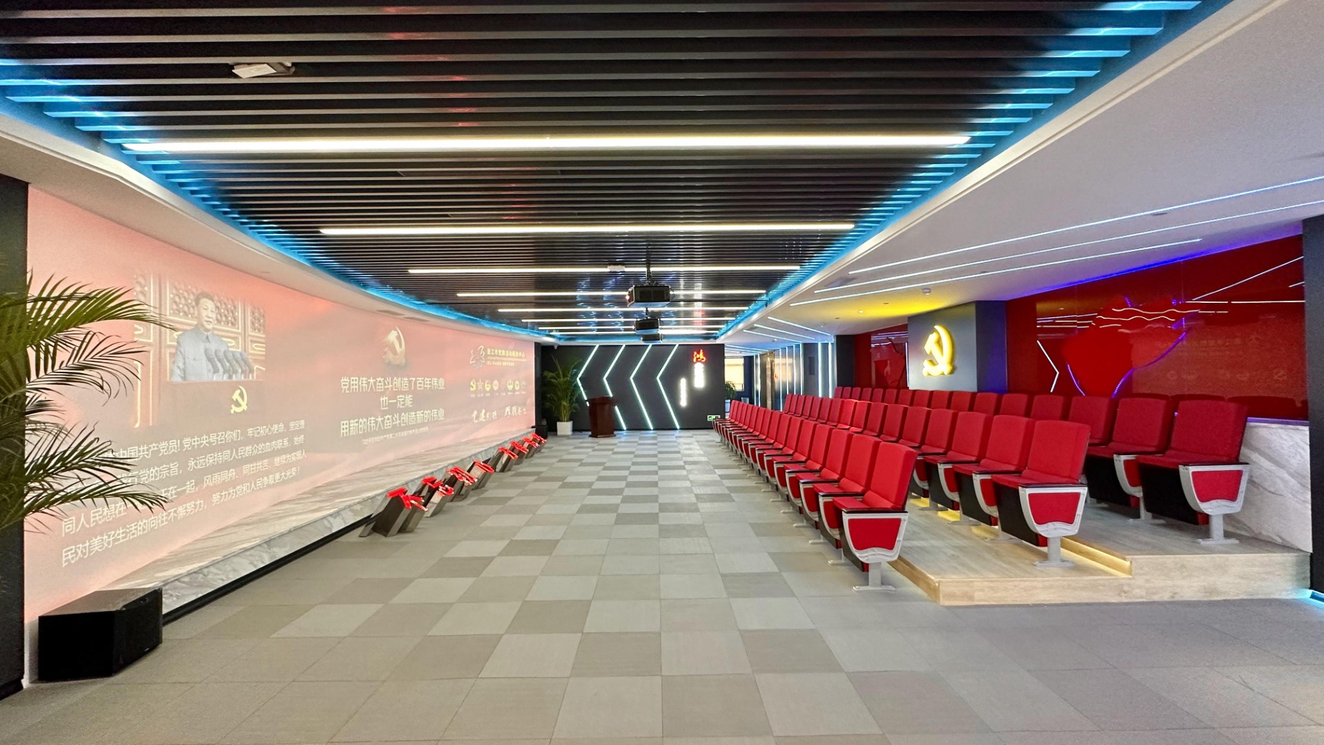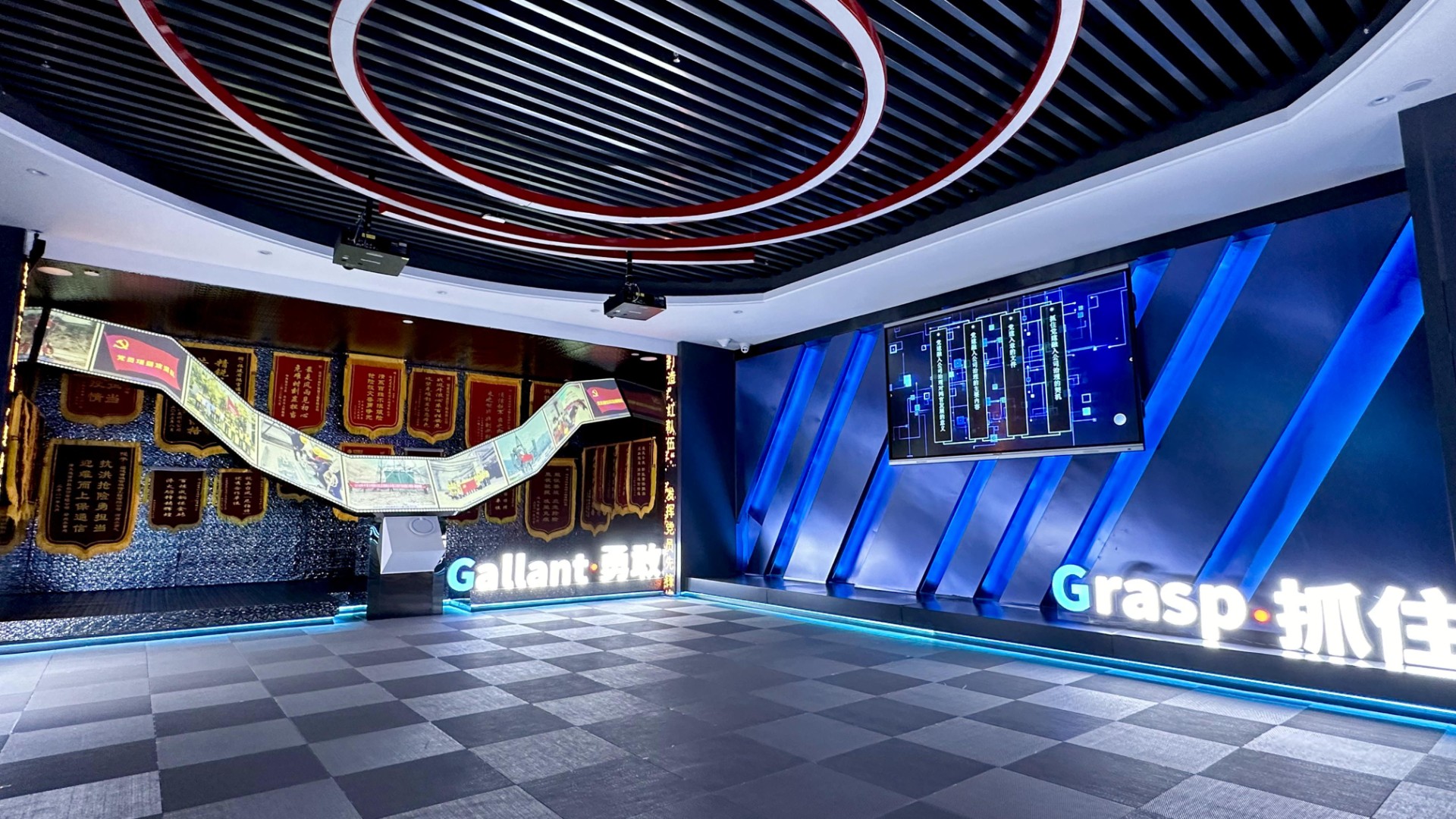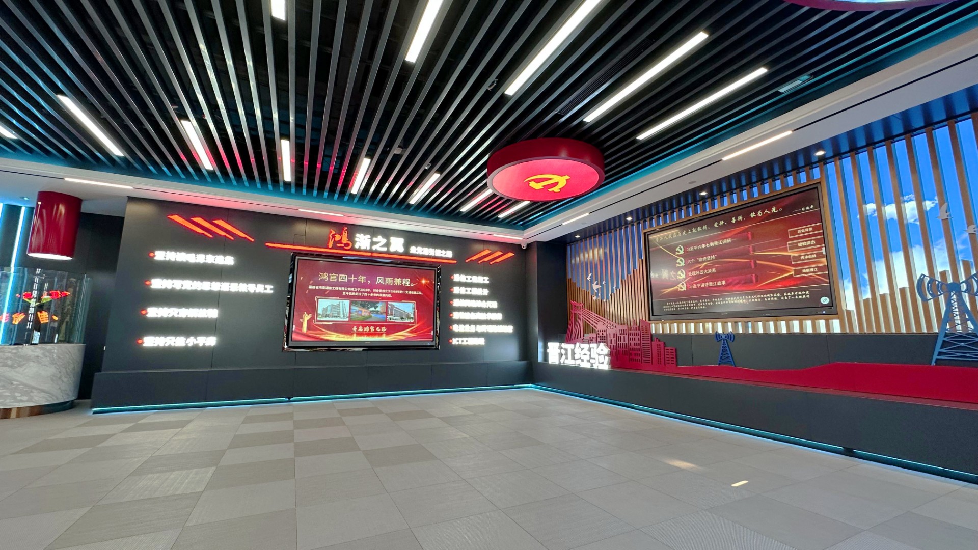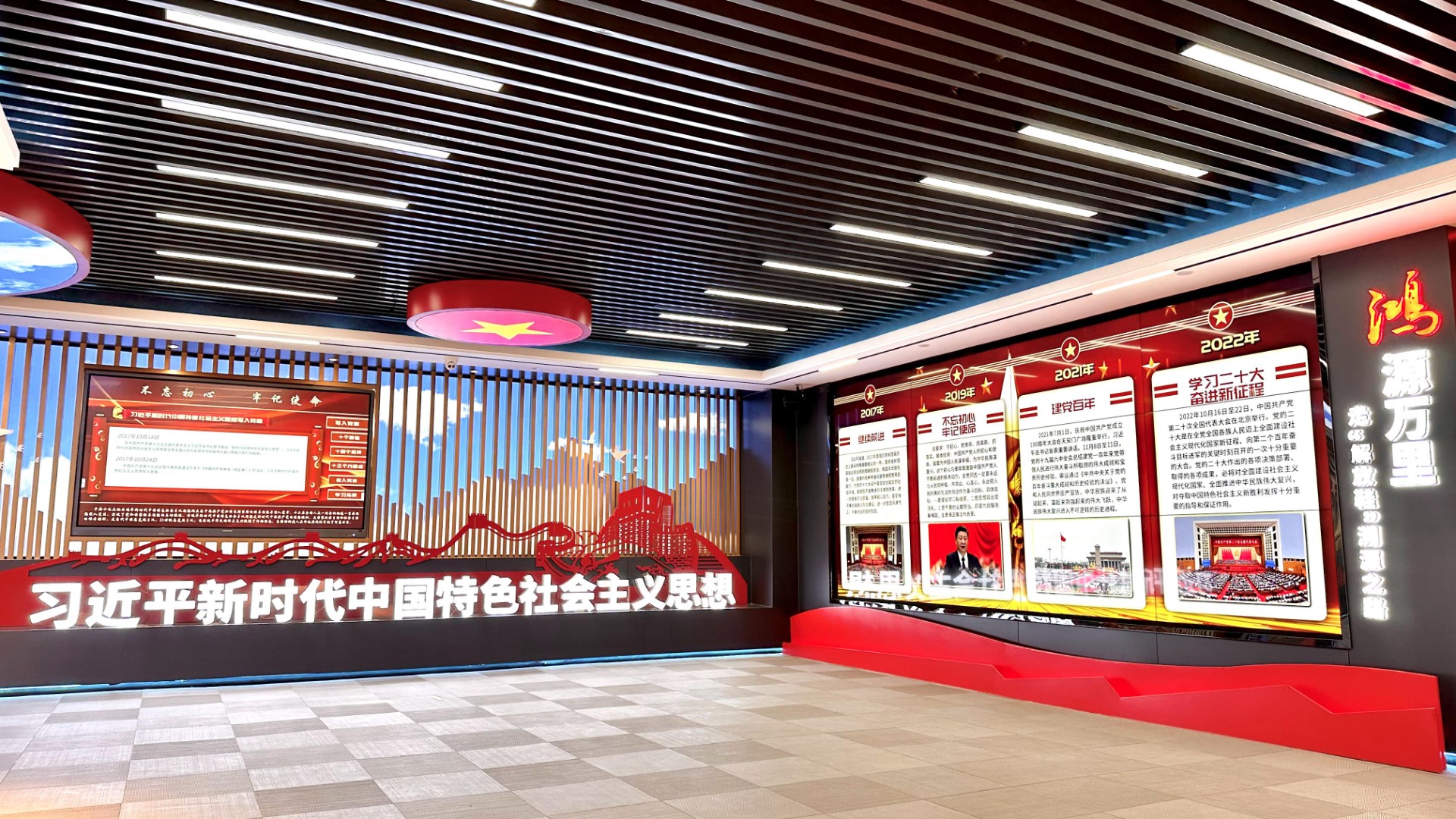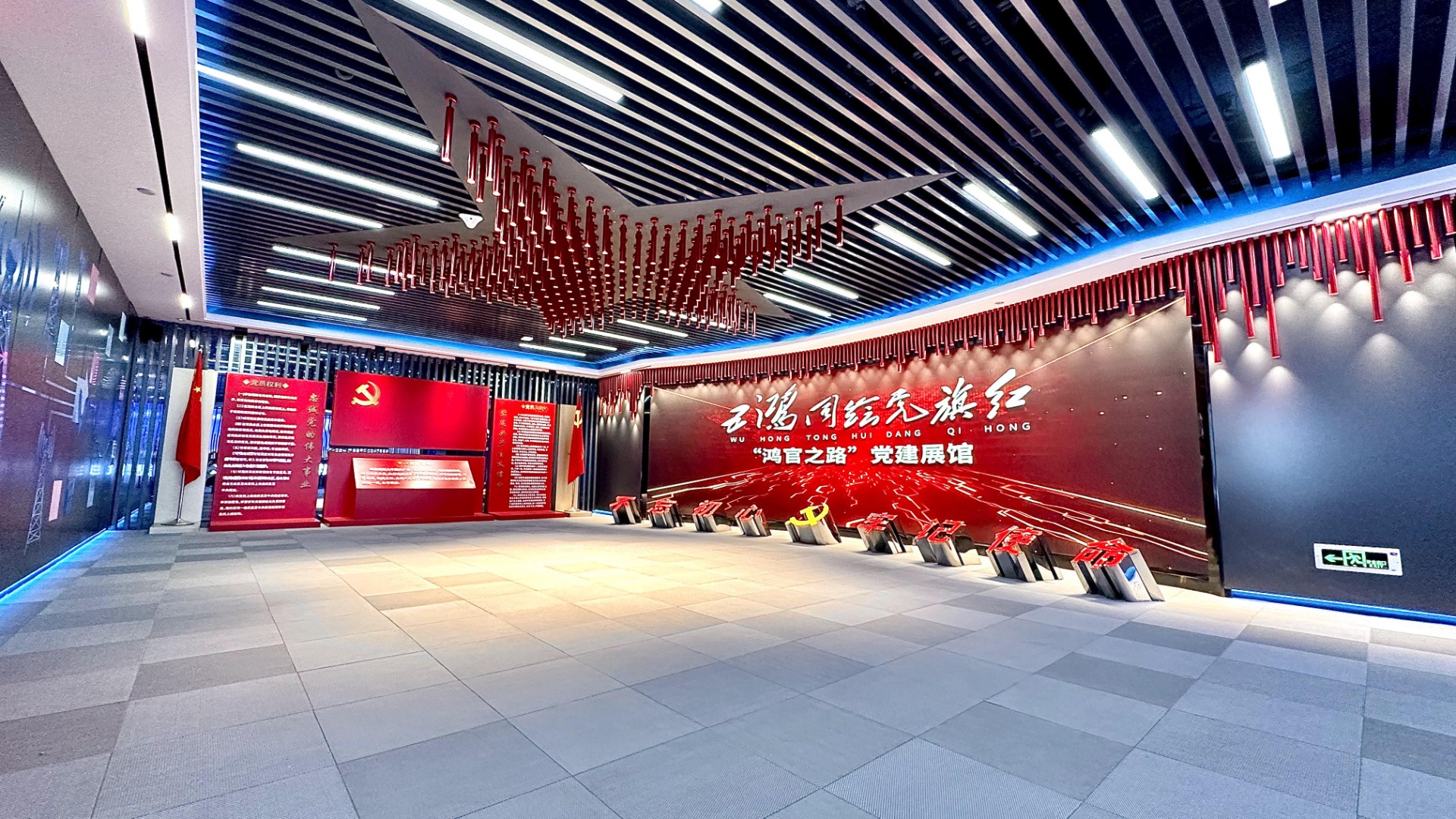 黨群活動服務(wù)中心本身即是黨建紅色文化的宣傳陣地,又是鴻官黨員政治生活中心!同時,“鴻官之路”黨建展館的建設(shè),突出黨建的歷史價值以及在紅色?化在企業(yè)中的意義與核心地位。展館以“五鴻同繪黨旗紅”。作為主題,以“五鴻”做為故事動線進行篇章劃分,將鴻官有個性罕見的“鴻”,通過企業(yè)“鴻”與黨建“紅”的結(jié)合形成整個展館展示內(nèi)容的主要脈絡(luò)。